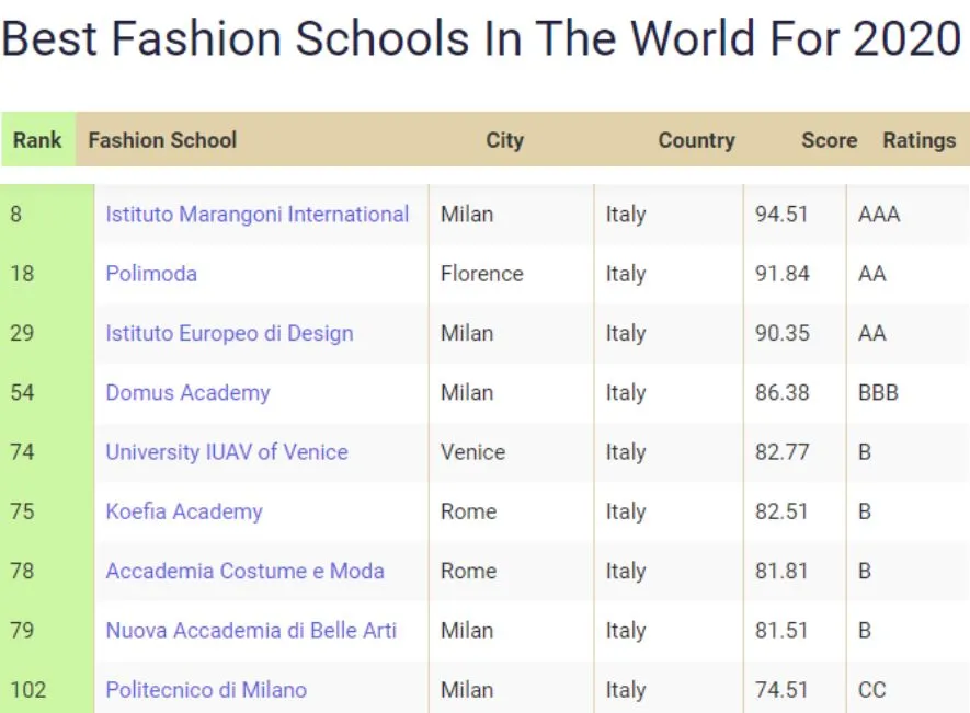 世界知名商业杂志《CEOWORLD》发布了2020年全球最佳时尚学院榜单。意大利有9所院校榜上有名: