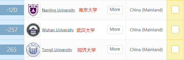 对比中国大学