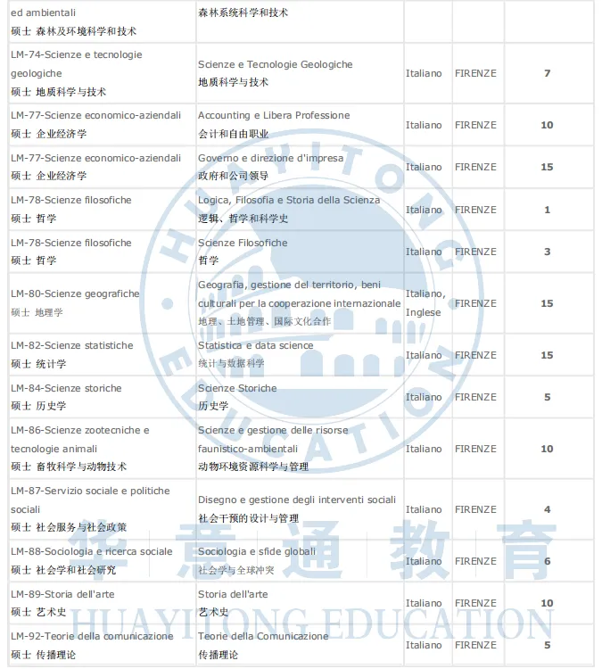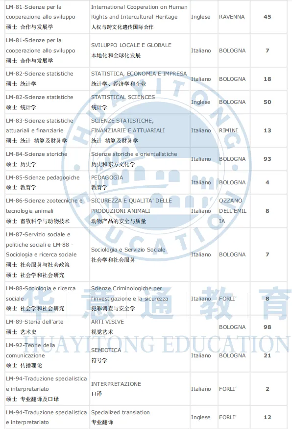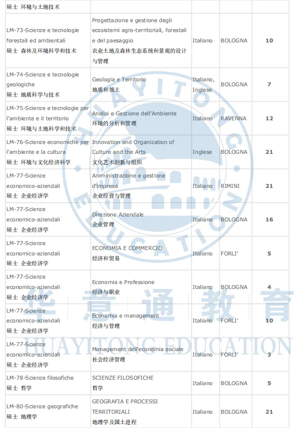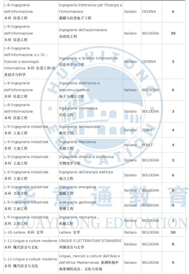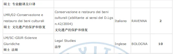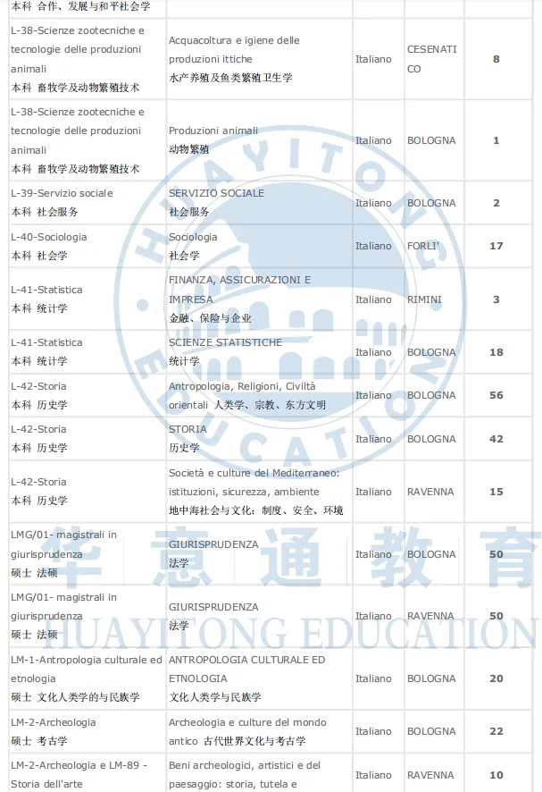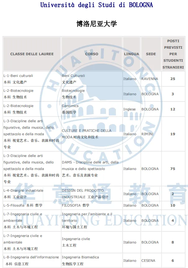 博洛尼亚大学专业太多,此处仅为部分,需要完整版的可私信我或咨询顾问老师。