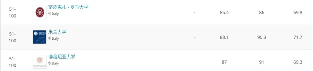 罗马第一大学排名第8,随后是约翰斯·霍普金斯大学和牛津大学。