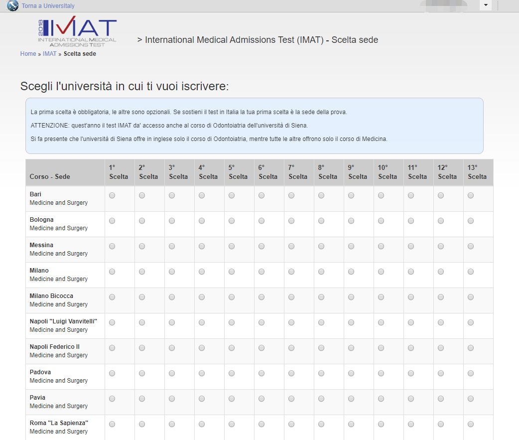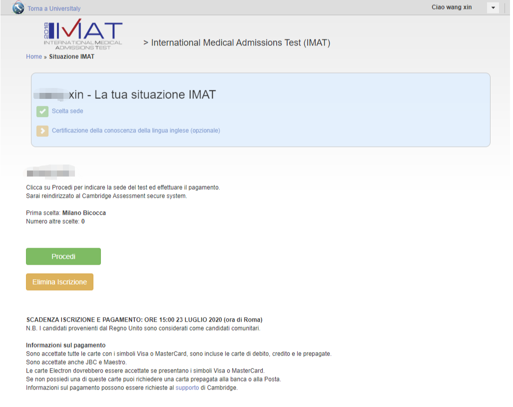 医学统考可以在7月1日(周三)—7月23日15:00(周四)进行报名,需要在专门的门户网站Universitaly注册。考试需要缴费后才能注册报名
