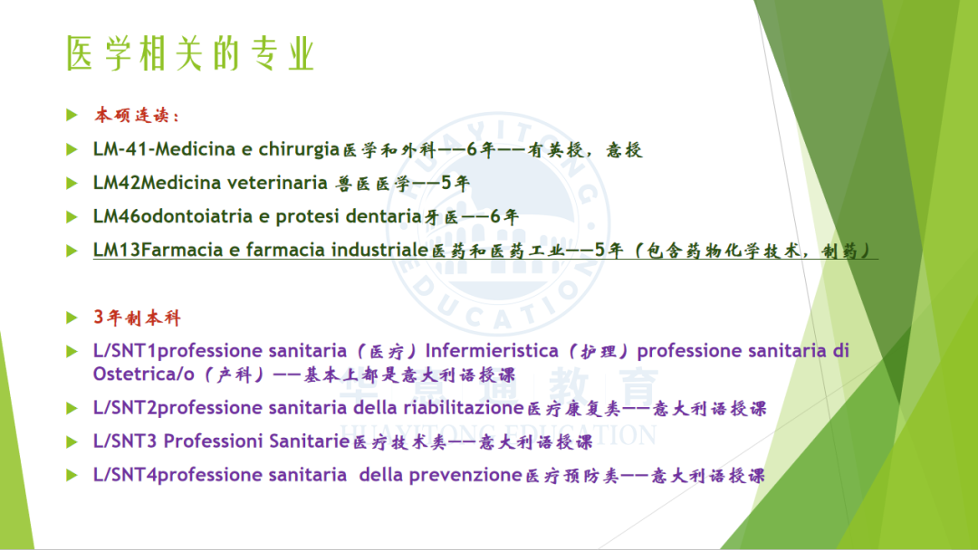 根据QS世界大学排名,医学相关专业有罗马大学,米大,博大,圣心,帕多瓦,都灵大学,比萨大学,那不勒斯二大,佛罗伦萨大学,帕维亚大学。